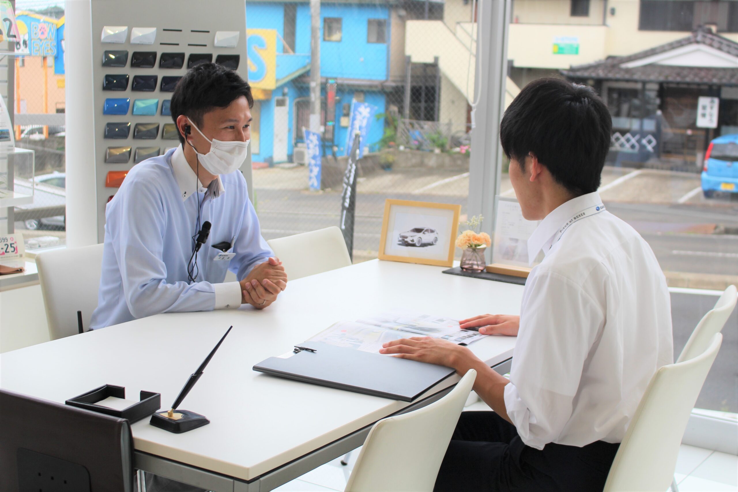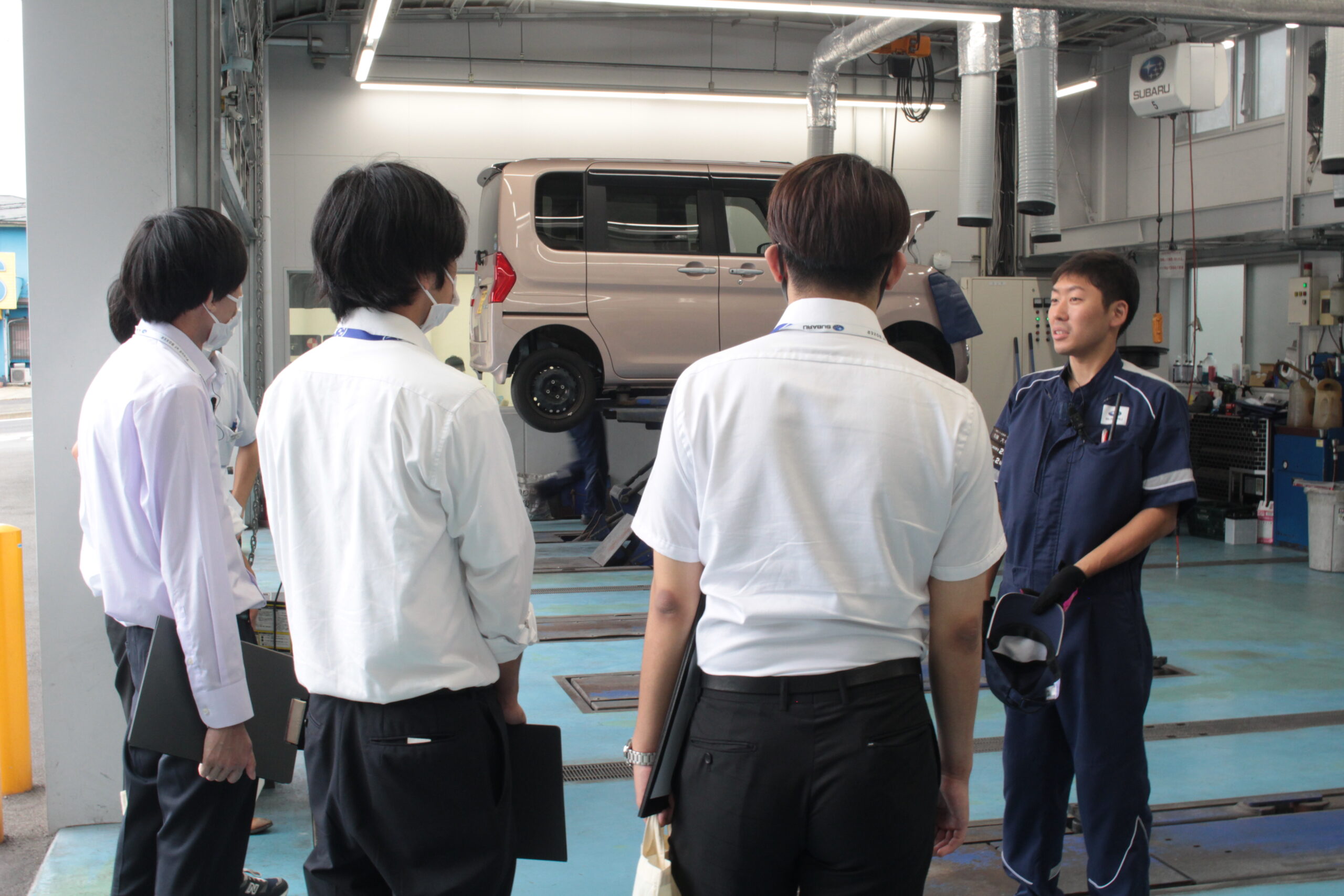 担当セールスが働く店舗へ足を運び、実際のショールームの雰囲気やさまざまなスタッフとの関わり等を見て、感じていただきました。間近でのメカニックの整備作業やスタッフが日頃働く事務所の様子など、インターンシップにご参加頂いたからこそ見ることができるリアルさを感じ取って頂けたのではないでしょうか?